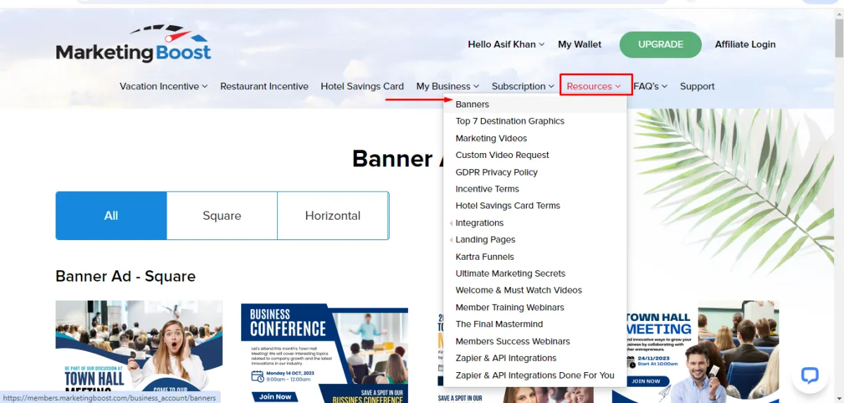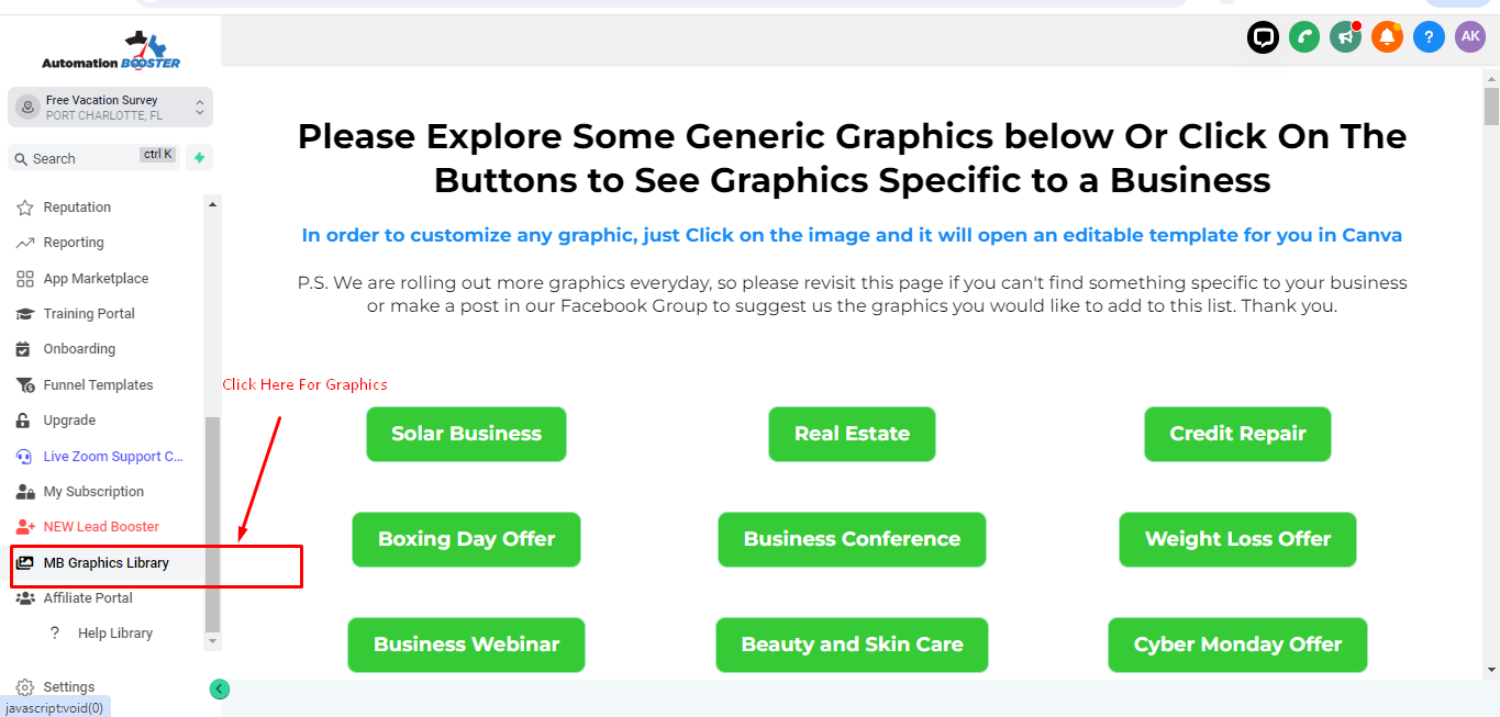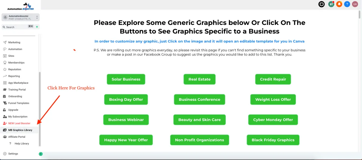 To Find Graphics, Go to your Marketing Boost Members Portal