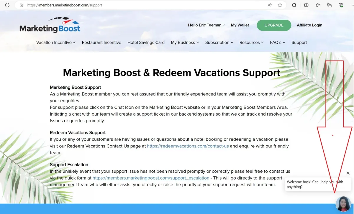 To start live chat, please click on Live Chat Widget Marketing Boost Members Portal.